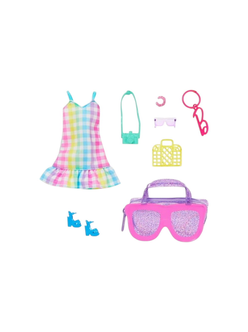 Multicolored Gingham Dress and Summer Accessories for Fashion Dolls
