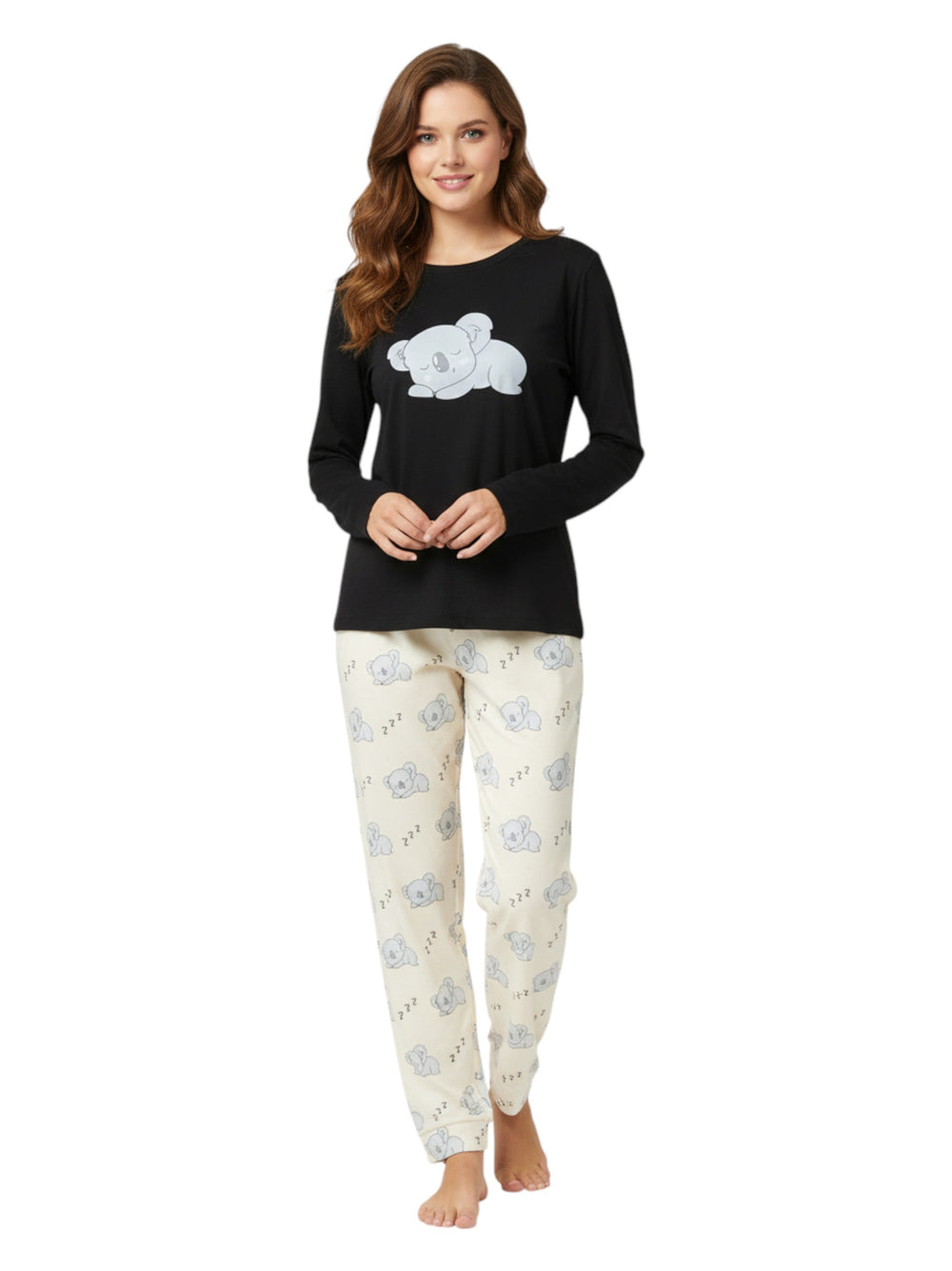 Women's Printed Pajama Set Top&Pant,Black