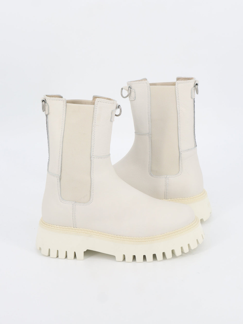 Women's Plain Leather Ankle Boots,Off White