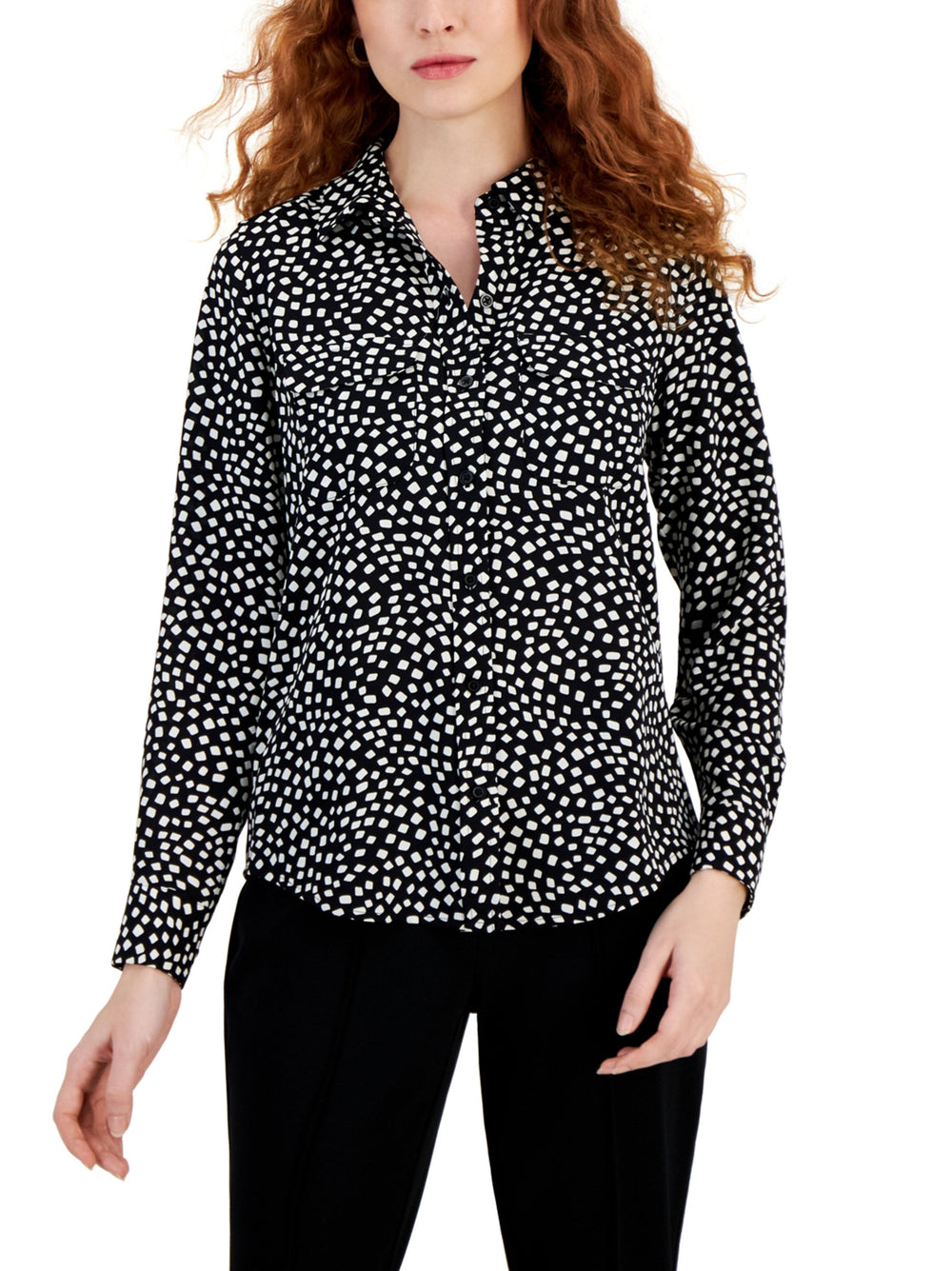 Women's Chemise With 2 Pocket Square Printed,Black